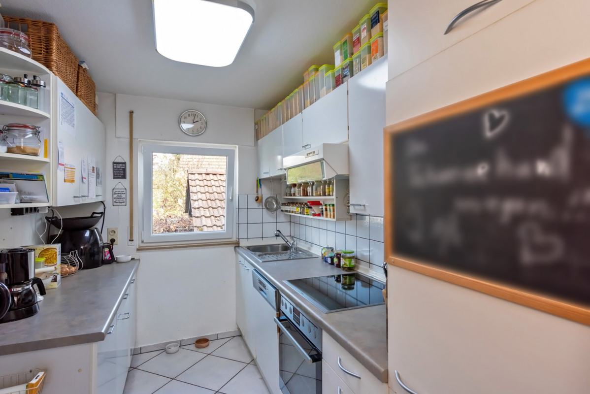 Die 3-Zimmerwohnung im Erdgeschoß bietet ein Schlafzimmer, ein großes Wohnzimmer, eine Küche mit Essbereich und ein großzügiges Bad.